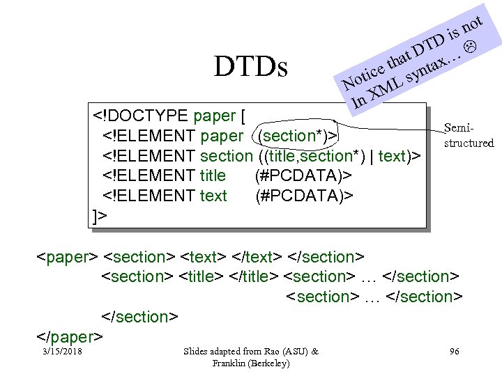DTDs not s Di T t D x… a e th synta otic L N M In X ]> Semistructured