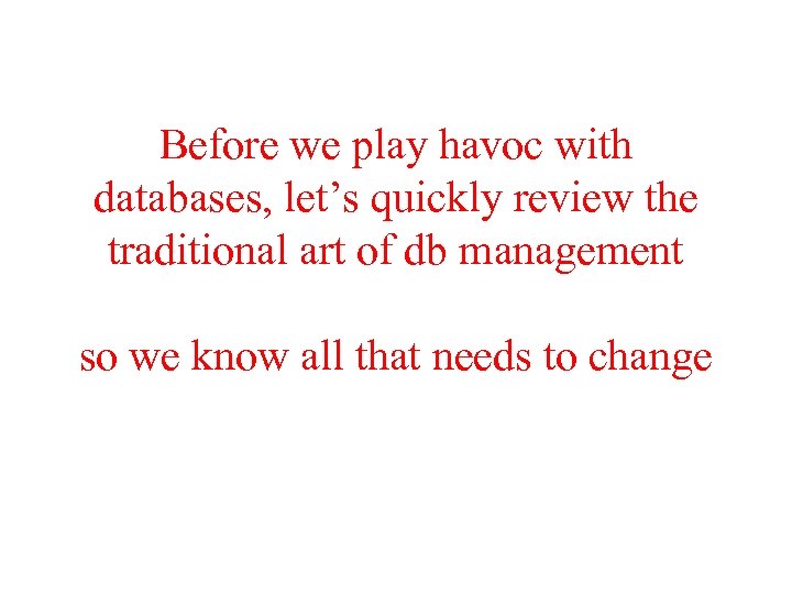 Before we play havoc with databases, let’s quickly review the traditional art of db management so we know all that needs to change