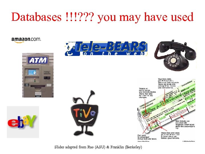 Databases !!!? ? ? you may have used Slides adapted from Rao (ASU) & Franklin (Berkeley)
