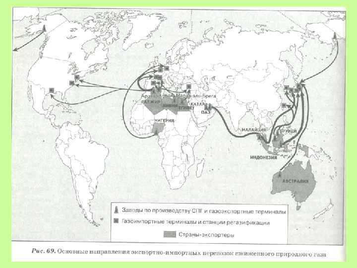 ХАРАКТЕРИСТИКА ОТДЕЛЬНЫХ ОТРАСЛЕЙ ПРОМЫШЛЕННОСТИ ГАЗОВАЯ ПРОМЫШЛЕННОСТЬ Добыча в год составляет 2 трлн. м 3, а запасы - 135 трлн. м 3. - 60% добычи газа приходится на страны СНГ (Россия, Узбекистан, Туркменистан) и США. - 20% добываемого газа идет на мировой рынок. 75% газа перевозится при помощи трубопроводного транспорта и 25% - при помощи танкеров (метановозы) ЗАДАНИЕ. Рассмотри рисунок. - Какой регион мира является главным импортером газа.