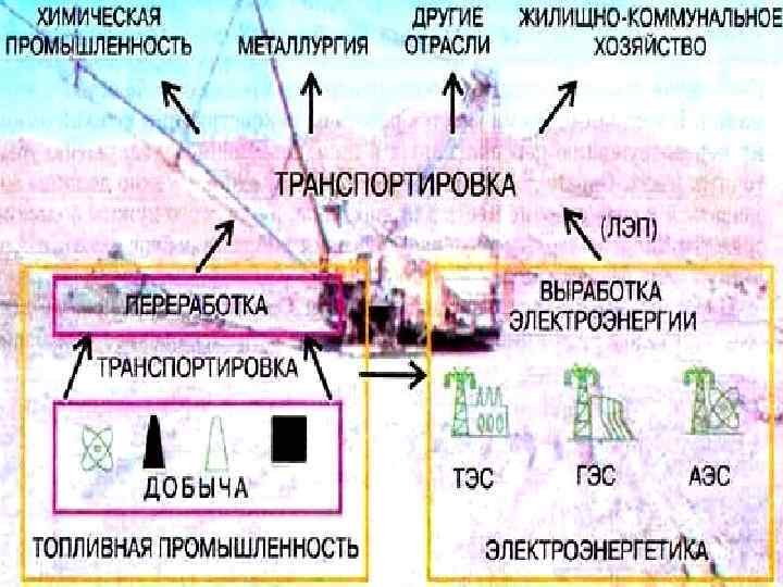 Топливно-энергетический комплекс ( ТЭК)- совокупность отраслей, связанных с производством и распределением энергии в её различных видах Звенья ТЭК Добыча и переработка топлива Производство электроэнергии Транспортировка топлива и электроэнергии Ø Изучить в учебнике рис. 1 на стр. 8 и выполнить в тетради задание № 1 на стр. 5 Ø Выполнить в тетради задание № 2 на стр. 5