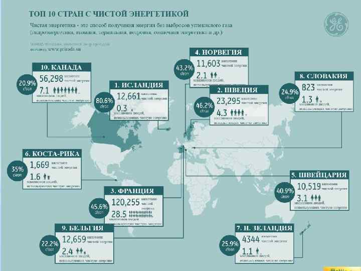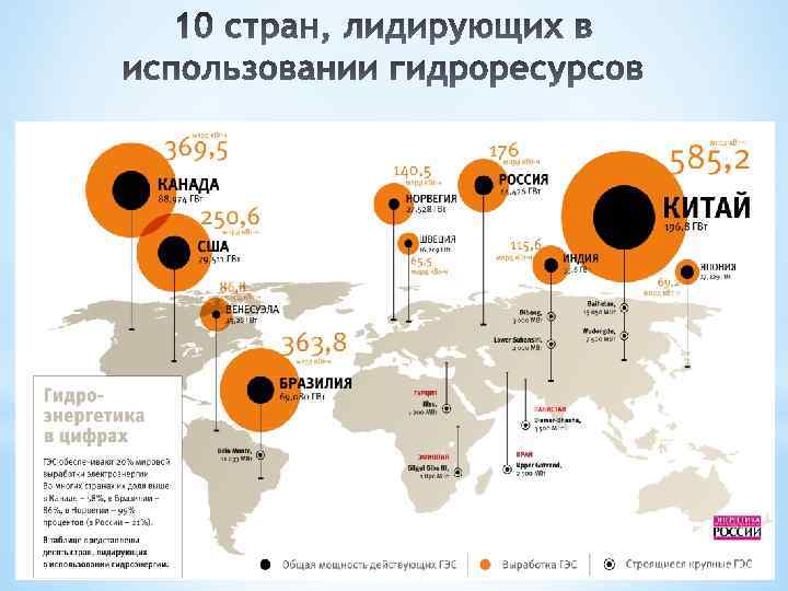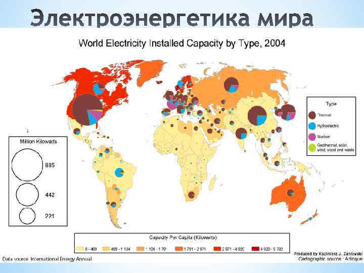 АЭС Лидеры: США (836, 63 млрд к. Вт·ч/год), работает 104 атомных реактора (20% от вырабатываемой электроэнергии) Франция (439, 73 млрд к. Вт·ч/год), Япония (263, 83 млрд к. Вт·ч/год), Россия (177, 39 млрд к. Вт·ч/год), Корея (142, 94 млрд к. Вт·ч/год) Германия (140, 53 млрд к. Вт·ч/год).