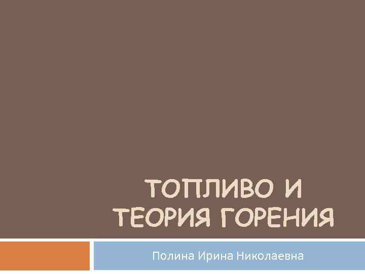 ТОПЛИВО И ТЕОРИЯ ГОРЕНИЯ Полина Ирина Николаевна
