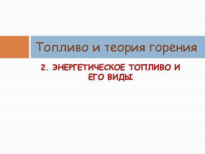 Топливо и теория горения 2. ЭНЕРГЕТИЧЕСКОЕ ТОПЛИВО И ЕГО ВИДЫ