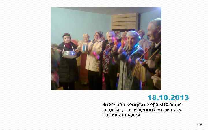 18. 10. 2013 Выездной концерт хора «Поющие сердца» , посвященный месячнику пожилых людей. 101