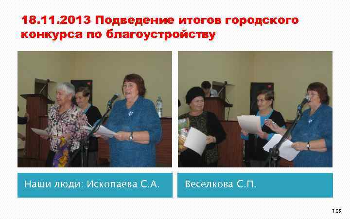 18. 11. 2013 Подведение итогов городского конкурса по благоустройству Наши люди: Ископаева С. А. Веселкова С. П. 105