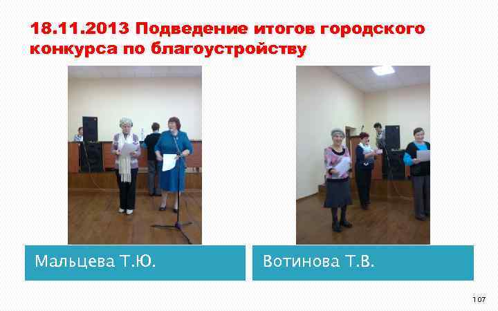 18. 11. 2013 Подведение итогов городского конкурса по благоустройству Мальцева Т. Ю. Вотинова Т. В. 107