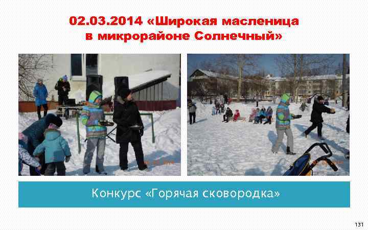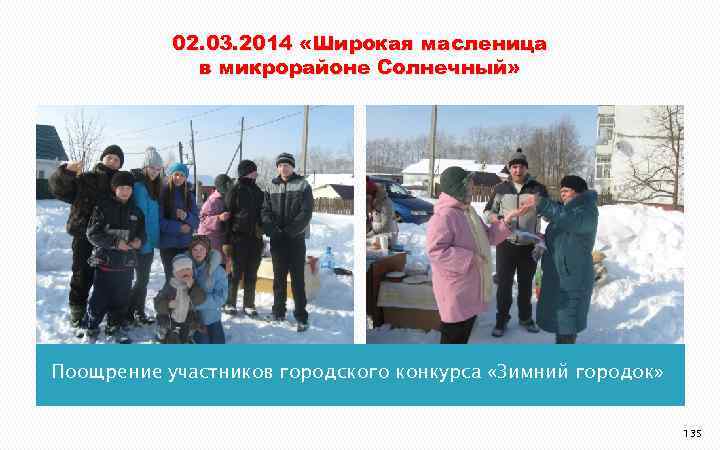 02. 03. 2014 «Широкая масленица в микрорайоне Солнечный» Поощрение участников городского конкурса «Зимний городок» 135