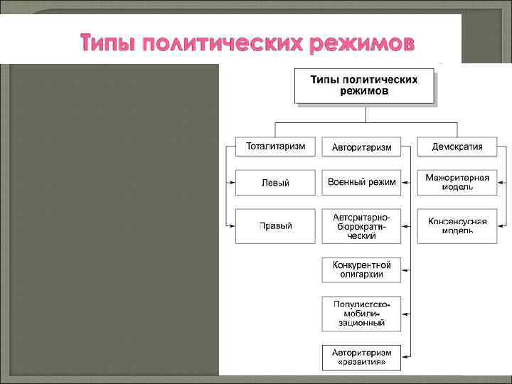 Первый признак - полная монополизация власти тем или иным политическим лидером. Генсек, фюрер или каудильо соединяет в своем лице законодательную и исполнительную власти, а судебная поставлена в такие условия, что она практически теряет свою независимость. Второй признак – стремление к ликвидации многопартийности, установлении господства одной политической партии в обществе.