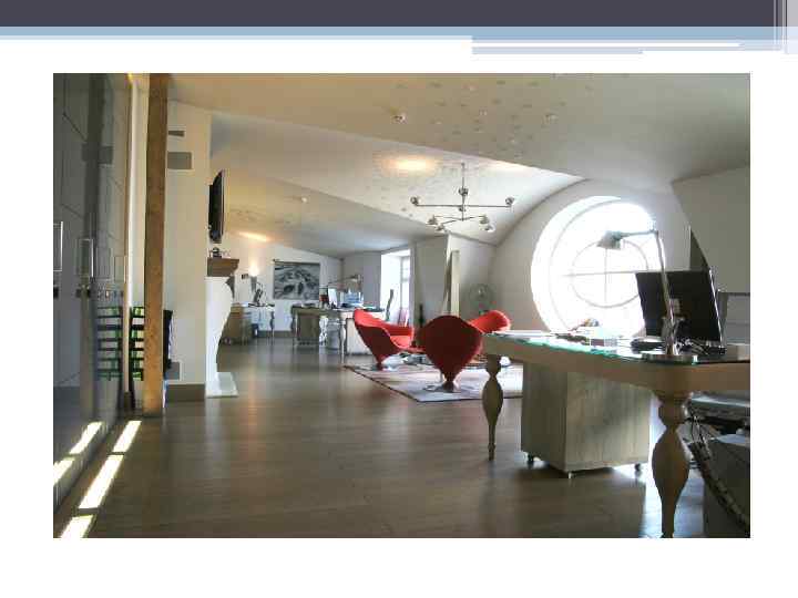 Разом з тим плавні, стрімкі, аеродинамічні форми, «повітряний» колір теж є ознакою стилю хай-тек. Зона переговорів.