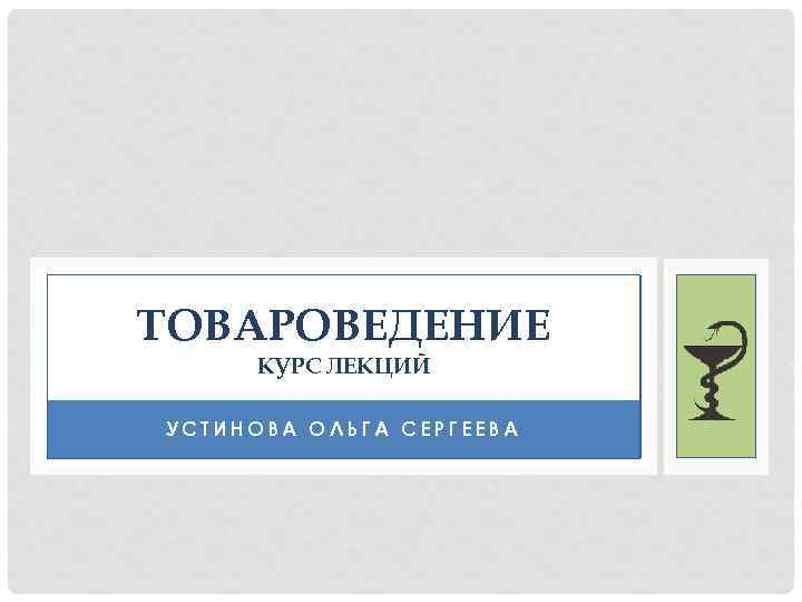 ТОВАРОВЕДЕНИЕ КУРС ЛЕКЦИЙ УСТИНОВА ОЛЬГА СЕРГЕЕВА