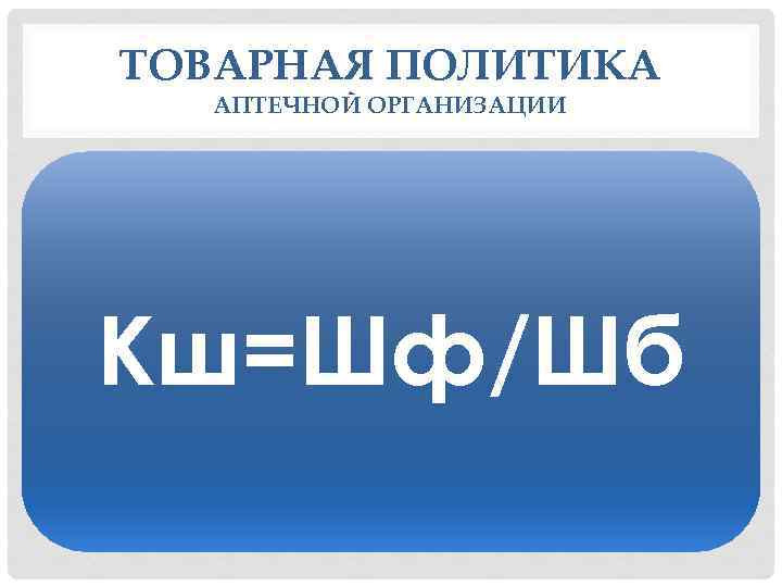 ТОВАРНАЯ ПОЛИТИКА АПТЕЧНОЙ ОРГАНИЗАЦИИ Кш=Шф/Шб