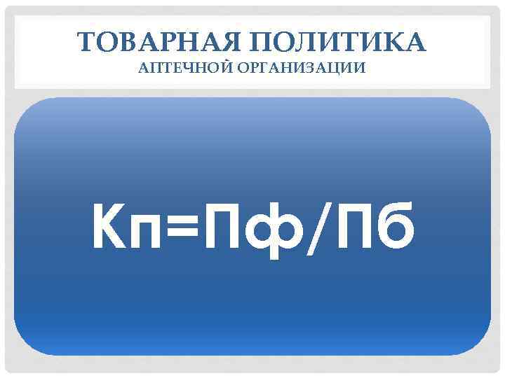 ТОВАРНАЯ ПОЛИТИКА АПТЕЧНОЙ ОРГАНИЗАЦИИ Кп=Пф/Пб
