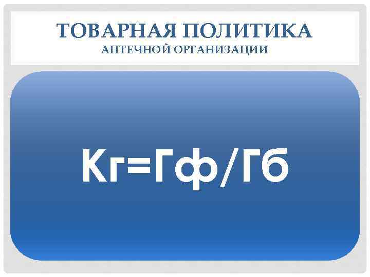 ТОВАРНАЯ ПОЛИТИКА АПТЕЧНОЙ ОРГАНИЗАЦИИ Кг=Гф/Гб