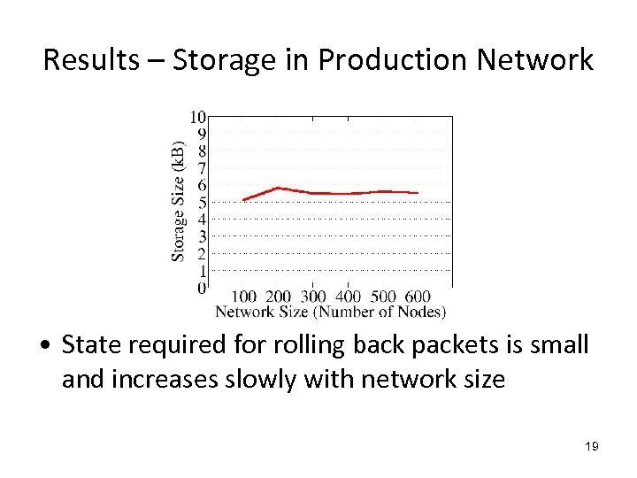 Results – Storage in Production Network • State required for rolling back packets is small and increases slowly with network size 19