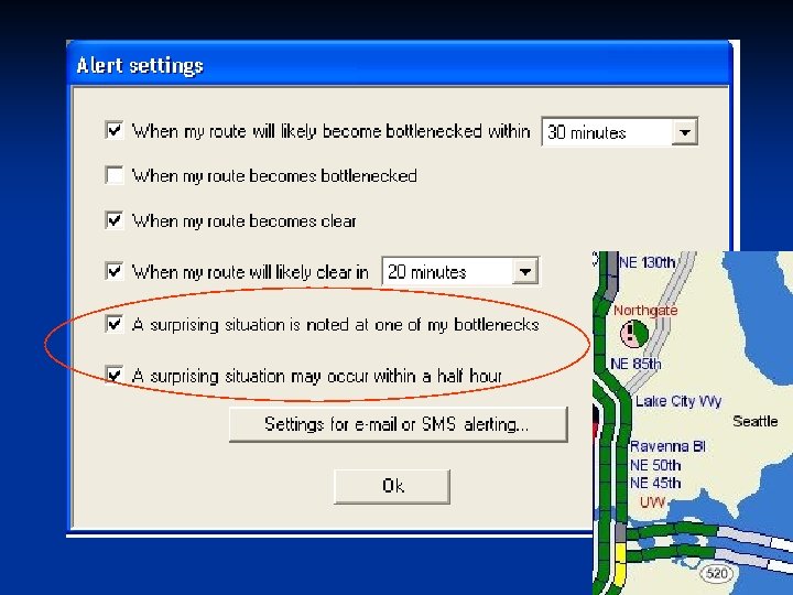 Alerting on Device and Desktop u Specify preferences and download to device u Time- and route-specific preferences Ø Routes composed from bottlenecks Ø Multiple alert types