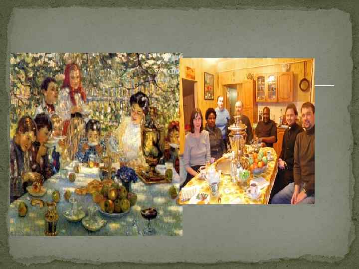 Семейная традиция в том , что за столом несколько поколений. Умение слушать уважать. понимать. Самовар кипит –уходить не вилит. Выпей чайку-забудешь тоску