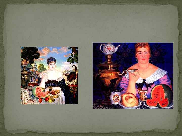 И, наконец, глубокая традиционная черта русского чаепития, - оно всегда служило цели объединению семьи, когда вокруг самовара собирались все члены, и стар и млад. Таким образом, русская чайная церемония способствовала укреплению внутреннесемейных связей, помогала людям разных поколений находить общий язык. За чайным столом семья проникалась единой атмосферой покоя. . . Филосовский взгляд Кустодива по -прежнему актулен для нашей культуры, стремящейся к восстановлению и сохранению глубоких традиций, включая чайную.