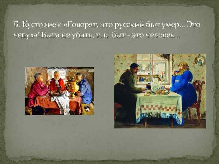 Б. Кустодиев: «Говорят, что русский быт умер. . . Это чепуха! Быта не убить, т. к. быт - это человек. . .