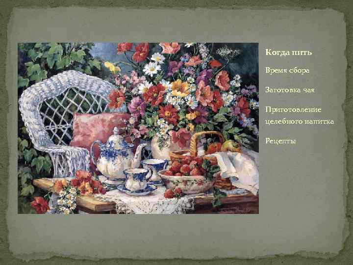 Когда пить Время сбора Заготовка чая Приготовление целебного напитка Рецепты