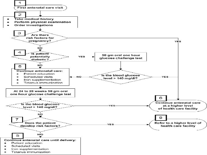 The Initial “Booking” Prenatal Visit • • Medical history Menstrual history Physical exam Investigations – Diagnostic tests – Screening Tests • Assess risk factors and building up a strategy for the antenatal care • Health Education with exhaustive efforts and advices