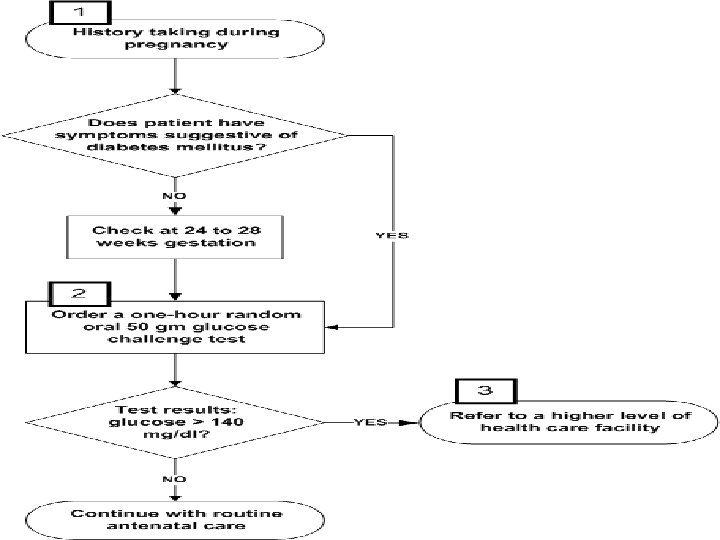 1 -Hour Routine Screening (ACOG, 1994) 50 G Glucose screening test (GST) between 24 and 28 weeks (non-fasting) If results <130 -140 No further screening needed. • If 130 -140 mg%