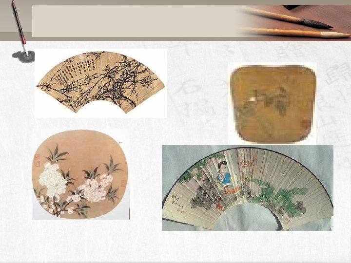Forms & Subjects • • The principal forms of traditional Chinese painting are hanging scroll挂轴, album of paintings画册, fan surface 扇面and long horizontal scroll.
