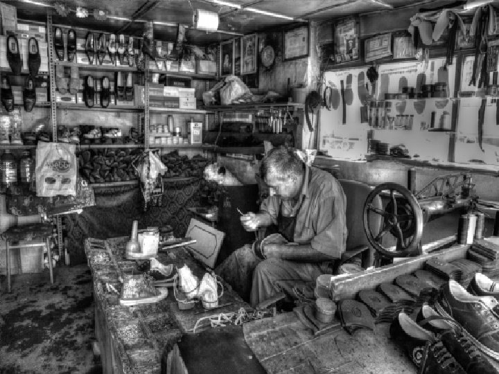 Developments in economy also led to the disappearance of most occupations. People used to get their shoes and clothes mended in the past but now they buy new ones rather than wearing mended clothes or shoes because their economical conditions are better now. This leads to an increase in the consumption of goods. Im Zuge des technischen Fortschritts und der industriellen Massenproduktion sind viele traditionelle Handwerksberufe nahezu oder völlig ausgestorben. Früher lies man kaputte Schuhe oder Kleidung beim Handwerker ausbessern. Heutzutage kauft man aufgrund besserer Lebensbedingungen einfach neue Ware.