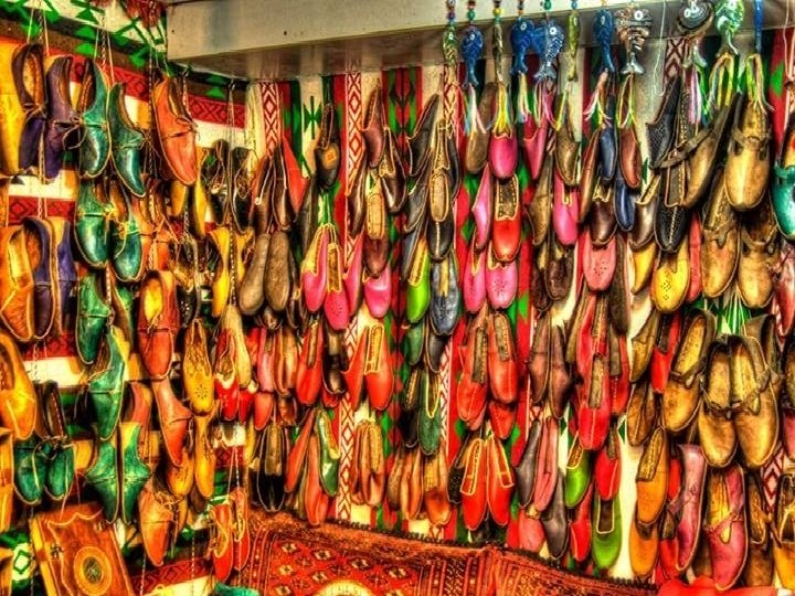 Royal people used to wear hand-sewn shoes made of silk and velvet while the common people wore leather and woollen ones. Adlige trugen Schuhe aus Samt und Seide, während das Volk Schuhe aus Wolle und Leder trugen.
