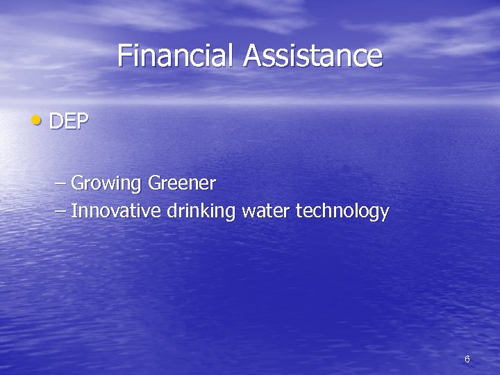 Financial Assistance • DEP – Growing Greener – Innovative drinking water technology 6
