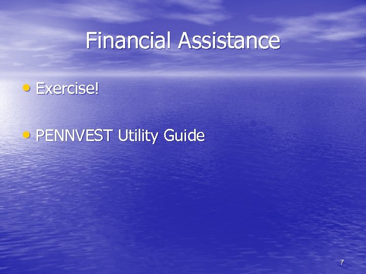 Financial Assistance • Exercise! • PENNVEST Utility Guide 7