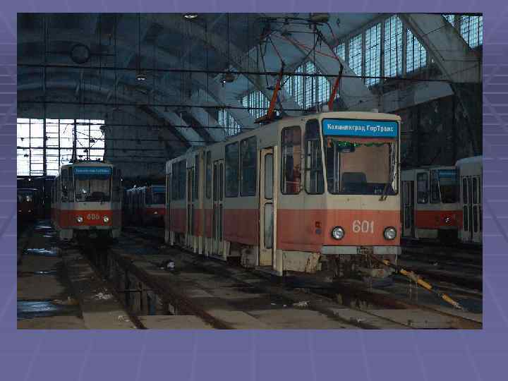 Послевоенный период истории трамвая § В январе 1945 года в связи с военными действиями трамвайное движение в Кёнигсберге прекратилось. Трамвайное хозяйство сильно пострадало от бомбёжек и штурма города: из пяти тяговых подстанций четыре были уничтожены, погибли многие вагоны. Однако, советские власти почти сразу занялись возрождением трамвая. Трамвай возобновил работу 7 ноября 1946 года. Тогда на маршрутах использовалось 129 восстановленных трамваев (в 1939 году в Кёнигсберге был 251 трамвай).