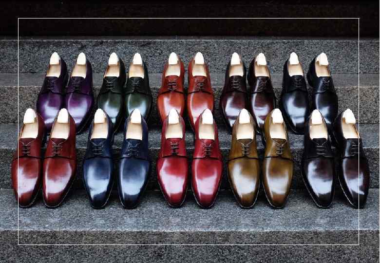 RTW / GMTO / ПАТИНА Обувь Carlos Santos, выбранная нами для транк шоу, производится в конструкции Goodyear Welted из трех основных типов телячьей кожи (гладкой кожи, замши и зернистой кожи) и на трех колодках. RTW — готовая обувь Carlos Santos, которую можно купить магазине или заказать на фабрике Carlos Santos, если ее нет в нужном вам размере у нас. GMTO — групповой МТО заказ, в рамках которого вы выбираете колодку, размер, модель обуви, тип и цвет кожи (телячья, замша, зернистая), а также подошву (одинарная кожаная, двойная кожаная, Dainite, Ridgeway, Commando). Для производства GMTO обуви нам нужно собрать 8 заказов на одну модель обуви. - 4 - Патина — Помимо RTW и GMTO обуви мы рады предложить сервис по патинированию обуви Carlos Santos. Вы выбираете модель обуви и один из 11 цветов патины, после чего мы отправляем заказ на фабрику, где готовую пару обуви красят вручную и отправляют в Ростов в течение 4 -6 недель.