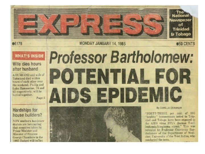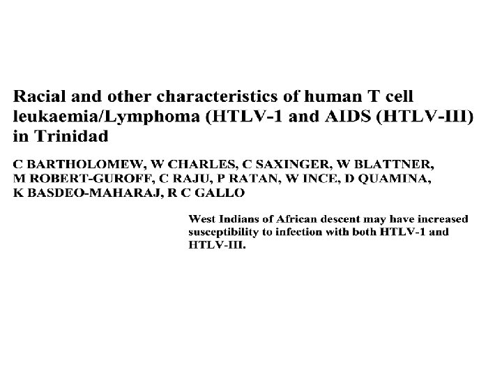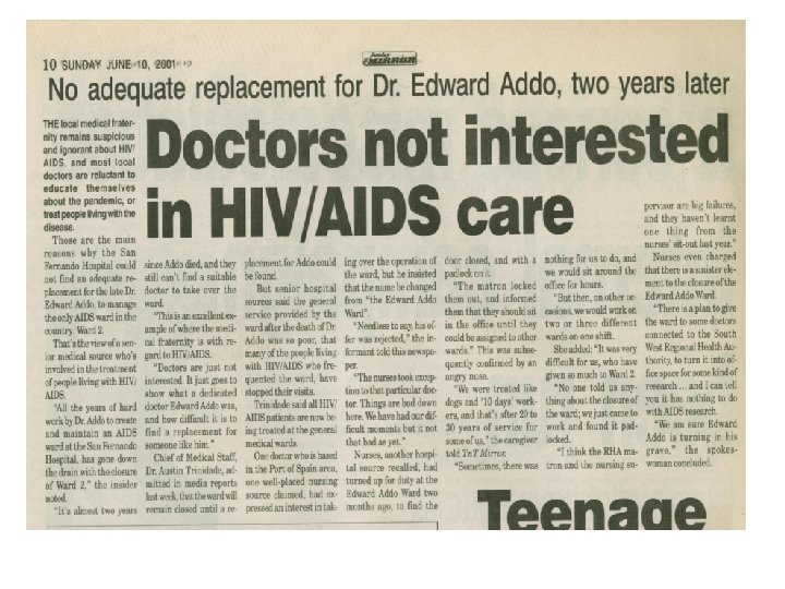 Cultural issue : Poverty and Structural Violence § Farmer states that the Caribbean region needs programs designed to remedy the inequalities around access to services. § These can help people to live free and to have healthy lives § The challenge for the new Caribbean HIV researchers is: How to build a research agenda for action that moves beyond good scientific analysis? Farmer, 1993; Farmer, 1999; Farmer, 2003