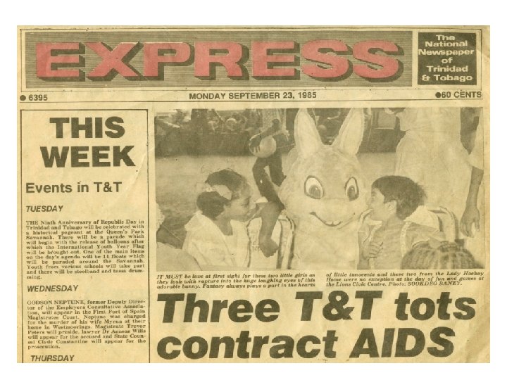 Hepatitis B surface antigenemia (HBs. Ag) in General population (Trinidad & Tobago) Total No. Tested (4454) HBs. Ag positive — 34 (0. 7%) Males 28 (82%) Hepatitis B surface antigenemia (HBs. Ag) in HIV-1 patients Total No. Tested (2293) HBs. Ag positive — 164 (7. 2%) Male/Female 106/58 HBe. Ag positive — 45 (27. 4%)