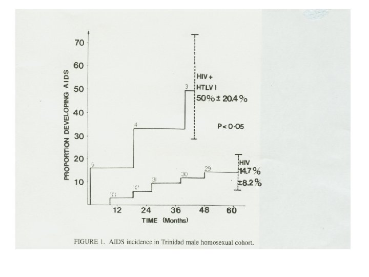 HTLV-1 seropositivity in 2042 HIV/AIDS patients Total # Coinfected = 128 (6. 2%) < 40 years > 40 years Total Male 10 ( 7. 8%) 45 (35. 2%) 55 (43%) Female 30 (23. 4%) 43 (33. 6%) 73 (57%) Total 40 (31%) 88 (69%) 128 (100%)