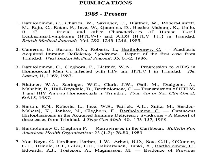Limitations of Research in the Caribbean • Need for an information data base, for a repository of projects, investigators and findings • Need for a repository of publications with easy access to all interested in carrying out research projects in the Caribbean • Need to foster more collaborative multi-national studies in the region • Need to involve the Community as partners