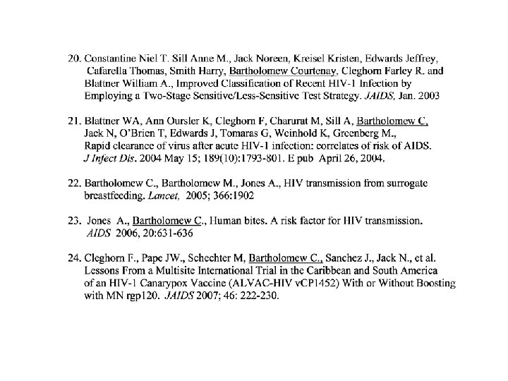 ETHICAL CONCERNS at the Haitian Study Group on Opportunistic Infections and Kaposi’s Sarcoma (GHESKIO) May 2, 1982 • Provision of HAART to Seroconverters Fitzgerald DW, Pape JW, Wasserheit JN, Counts GW, Corey L Provision of treatment in HIV-1 vaccine trials in developing countries. Lancet 2003; 362: 993 -994. • Enhancing the understanding of the informed consent process in HIV Research Joseph P , Schackman BR, Horwitz R, Nerette S, Verdier RI, Wright P, Johnson W, Pape JW, Fitzgerald DW. The use of an educational video during informed consent in an HIV clinical trial in Haiti. J Acquir Immune Defic Syndr. 2006; 42: 588 -91. .
