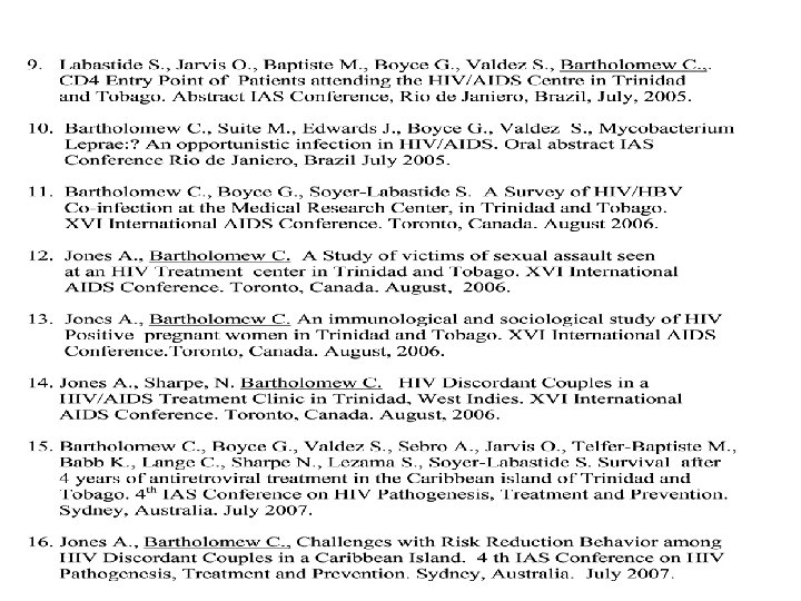Potentials areas for Research Collaboration within the Caribbean countries • Therapy – ART outcome in the Caribbean – Cost of ART in the Caribbean • High risk cohort of CSWs: Haiti, DR, PR • IRB clearance