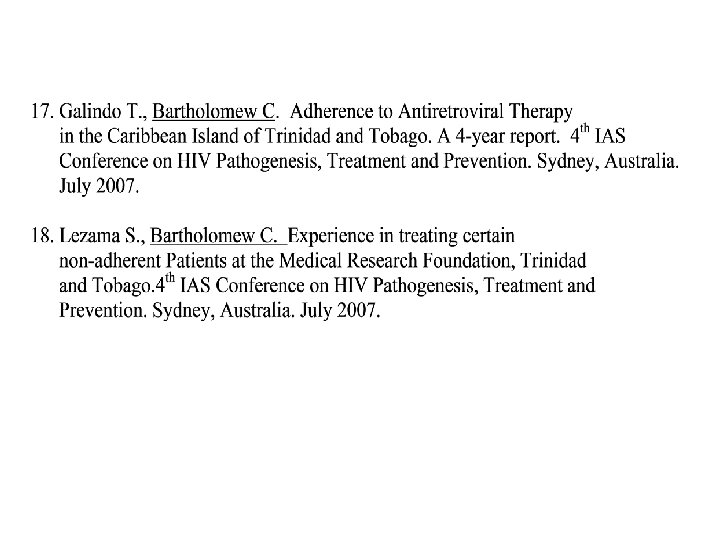 Limitations of Research in the Caribbean • Many countries do have functioning National Ethical Review Boards with standardized protocols for approval. Some feel that Regional Ethics Review process needs to be established to ensure equity. • Not many people in the field are qualified to be Principal Investigators. Young people therefore need to be mentored in the HIV research field. • More rigorous research methods need to be applied to some of the studies that are designed and implemented so the results can be used to provide evidence base policy decisions.