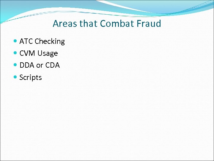 Areas that Combat Fraud ATC Checking CVM Usage DDA or CDA Scripts
