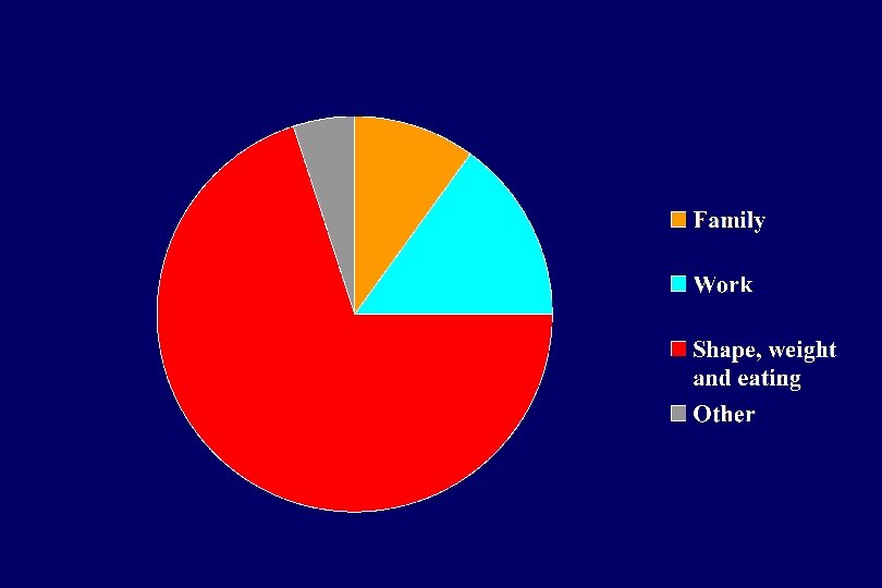 “CORE” LOW SELF-ESTEEM • Many patients with eating disorders are highly self-critical – due to failure to meet their goals (e. g. , perfect control over eating) – generally lessens with successful treatment • Subgroup that has a more global negative view of themselves - “core low self-esteem" – unconditional and pervasive negative view of themselves – part of their permanent identity – leads them to make negative judgements about themselves that are autonomous and independent of performance