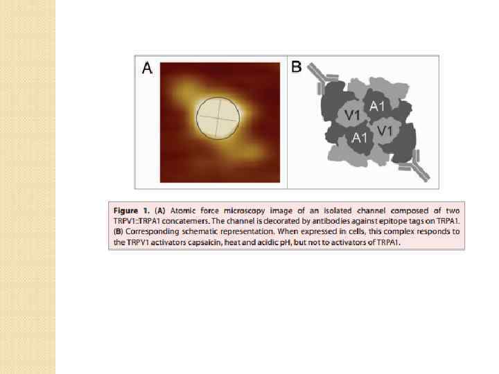 TRPV 1 N C >42 º Капсаицин, который в изобилии содержится в стручках перца Чили открывает ионные каналы TRPV 1 Лидокаин блокирует боль и тактильную чувствительность через закрытие натриевых каналов. Если активировать TRP каналы капсаицином, то последующее введение лидокаина будет избирательно блокировать только каналы, расположенные в болевых нейронах и не будет блокировать тактильную чувствительность. 34