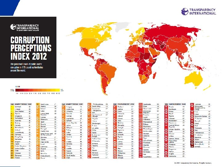 CPI 2012 VESHTRIM GLOBAL Ø PERFSHIHEN 176 VENDE Ø 70 % E VENDEVE JANE VLERESUAR ME ME PAK SE 50 PIKE Ø MESATARJA E PIKEVE 43 PIKET SHUME TE KORRUPTUARA SHUME TE PASTRA