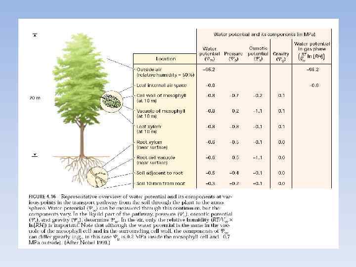 Рушійні сили пересування води у рослині Верхній кінцевий двигун – транспірація Нижній кінцевий двигун – корневий тиск Робота цих двигунів забезпечується: • Різницею концентрації парів води в листках і атмосфері • Градієнтом водного потенціалу в корені • Гідростатичним тиском в ксилемі • Гідростатичним тиском грунту