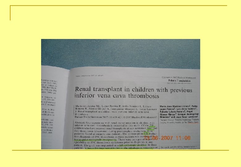Trasplante renal. Actividad en España. n n n Trasplante renal Durante el año 2005 se han realizado en nuestro país 2. 200 trasplantes renales de los que 72 eran trasplantes infantiles. La tasa de trasplante renal de cadáver pmp se sitúa en 47, 9 lo que nos coloca a la cabeza mundial de este tipo de trasplantes.