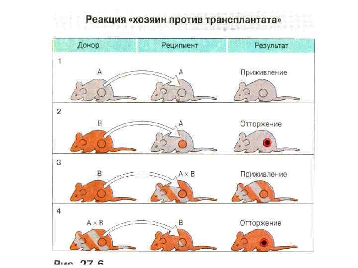 Реакция отторожения трансплантата Клетки костного мозга в 1 -ом трансплантате в качестве клеток – «пассажиров» , премировали реципиента к аллоантигенам В