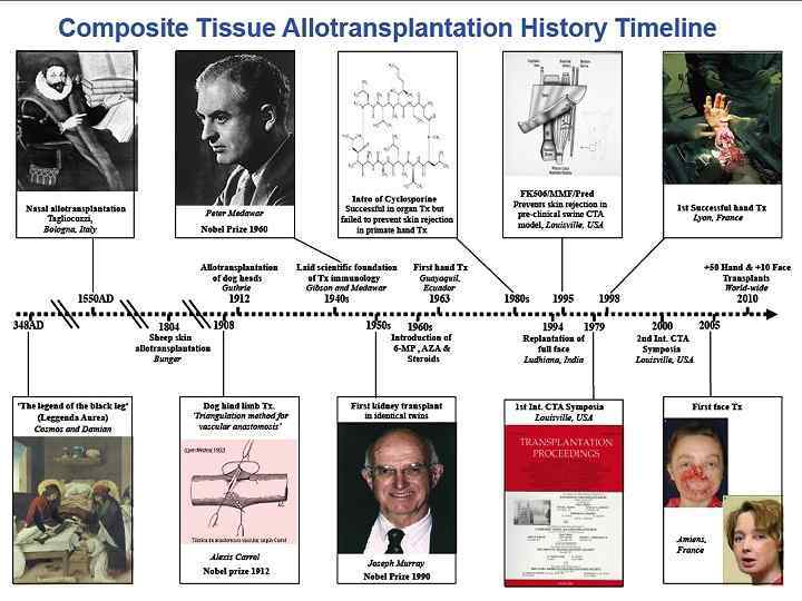 Первая успешная трансплантация конечности 23 Сентября 1998 Lyon, France Dr. Jean-Michel Dubernard Первая успешная билатеральная трансплантация конечностей Январь 2000 Lyon, France