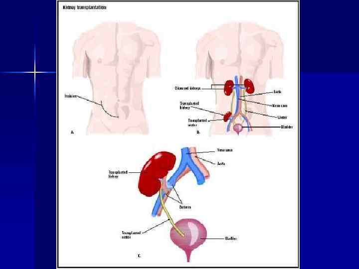Абсолютные противопоказания к трансплантации почки § § Диссеминированный или не леченный рак Тяжелая психическая болезнь Прогрессирующая или рефрактерная сердечно- легочная недостаточность Активная инфекция мочевых путей, активный туберкулез § Необратимое поражение печени (цирроз) Активное системное заболевание § ВИЧ – инфекция (? ) §