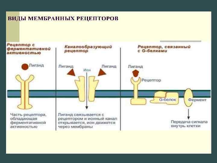 Мембранные белки связаны с липидным бислоем различными спосо- бами. Мембранные белки представлены тремя разновидностями : • периферические; • интегральные (трансмембранные); • полуинтегральные. Периферические располагаются на поверхности билипидного слоя и связаны с интегральными белками и полярными головками липидных молекул электростатическими, водородными связями, солевыми мостиками; периферические белки никогда не образуют сплошного слоя; они, в основ- ном, растворимы в воде, легко отделяются от мембраны без ее разрушения; некоторые периферические белки обеспечивают связь между мембранами и цитоскелетом. Интегральные белки полностью располагаются в билипидном слое, их молекулы в своем составе имеют алифатические (липофильные) аминокислоты, которые погружены в липидный слой, и наружные гидрофильные концы, с помощью которых белковые молекулы образуют связи с остатками сахаров гликокаликса и периферическими белками. Полуинтегральные белки погружены в билипидный слой частично. Весь набор белковых молекул распределен в мембране мозаично и легко перемещается в ее плоскости с участием элементов цитоскелета, которые образуют связи с интегральными белками.